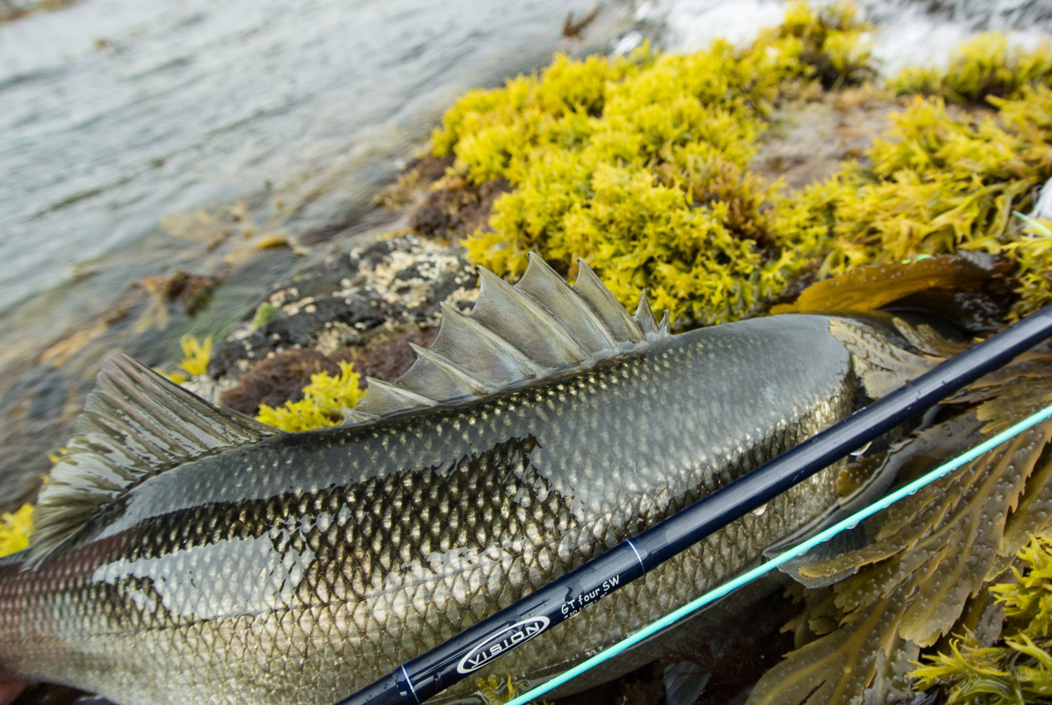There are times when the things you see you sometimes doubt they are actually happening. I’ve seen a lot of things when bass fishing but today’s events were a little new to me. I stood at the edge of a reef with white water breaking in front of me, waves running maybe to a metre high, a little off from crystal clear. The wind was gusting five to six and at times touching seven, rising tide, arriving weather front, the conditions I often seek to flyfish in at any opportunity.